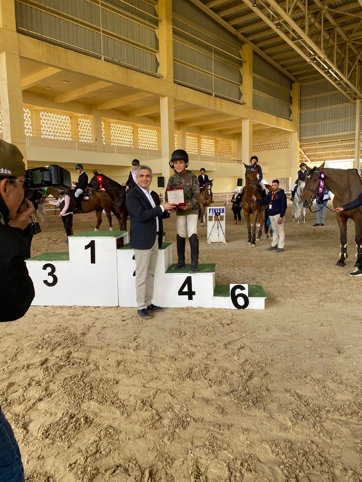 جاء ذلك بعد اداء متميز للفارس حمزة خلال يومين من منافسات البطولة بنادي الرباب للفروسية.