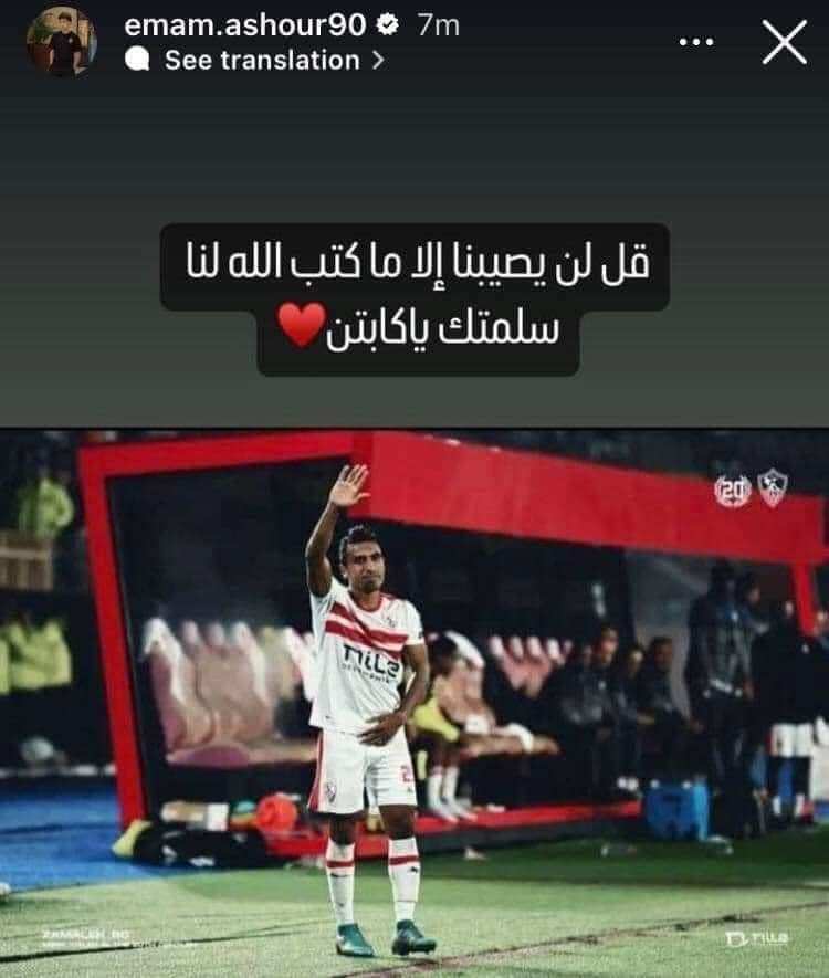 ووضع إمام عاشور لاعب الأهلي الحالي في موقع التواصل الاجتماعي انستجرام صورة لعبد الشافي مرتديا قميص الزمالك وكتب عليها "قل لن يصيبنا إلا ما كتب الله لنا" سلامتك يا كابتن.
