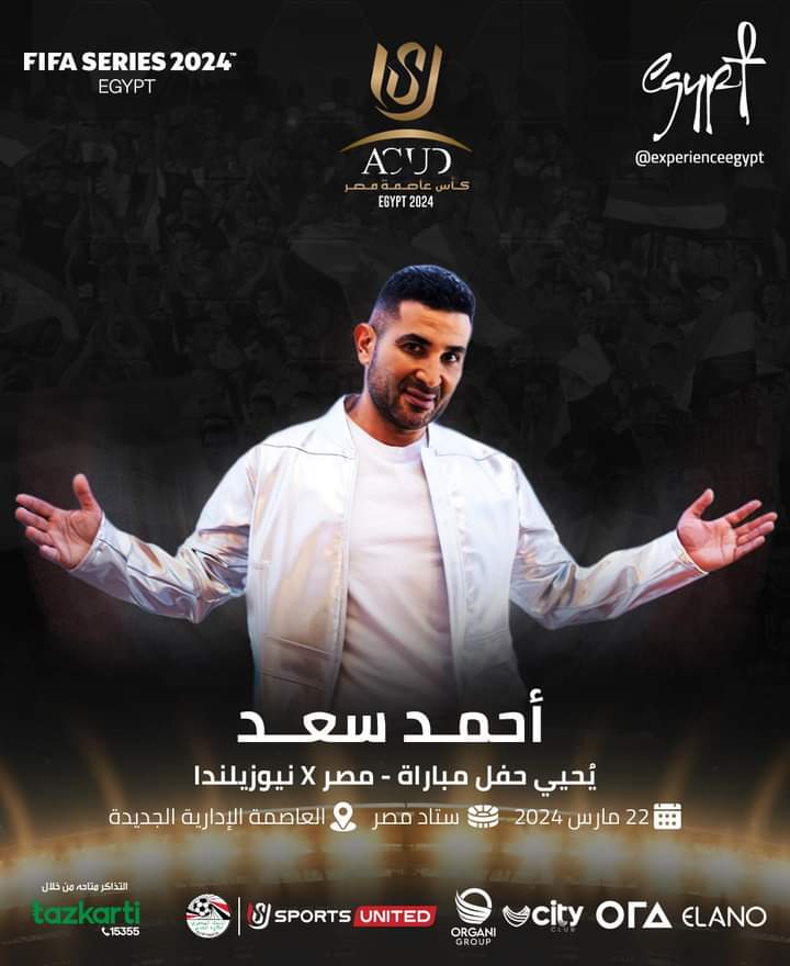 كشفت الشركة المتحدة المصرية لكرة القدم عن احياء الفنان أحمد سعد حفل افتتاح بطولة كأس عاصمة مصر، التي تنظمها الشركة في النسخة الأولى من FIFA series 2024.