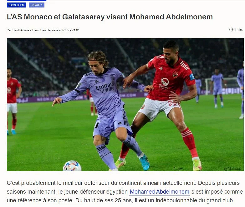 وقال موقع فوت ميركاتو الفرنسي أن محمد عبد المنعم بات على رادار اثنين من الأندية الاوروبية للحصول على توقيعه في الميركاتو الصيفي القادم.