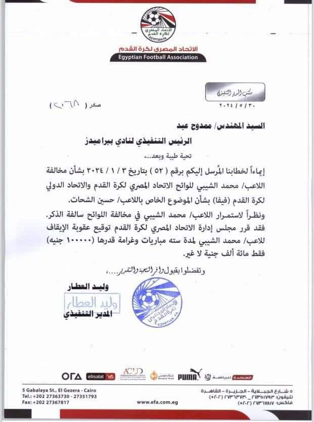 بالمستندات.. نصر الدين عزام: إيقاف محمد الشيبي مخالف للوائح فيفا والقانون المصري
