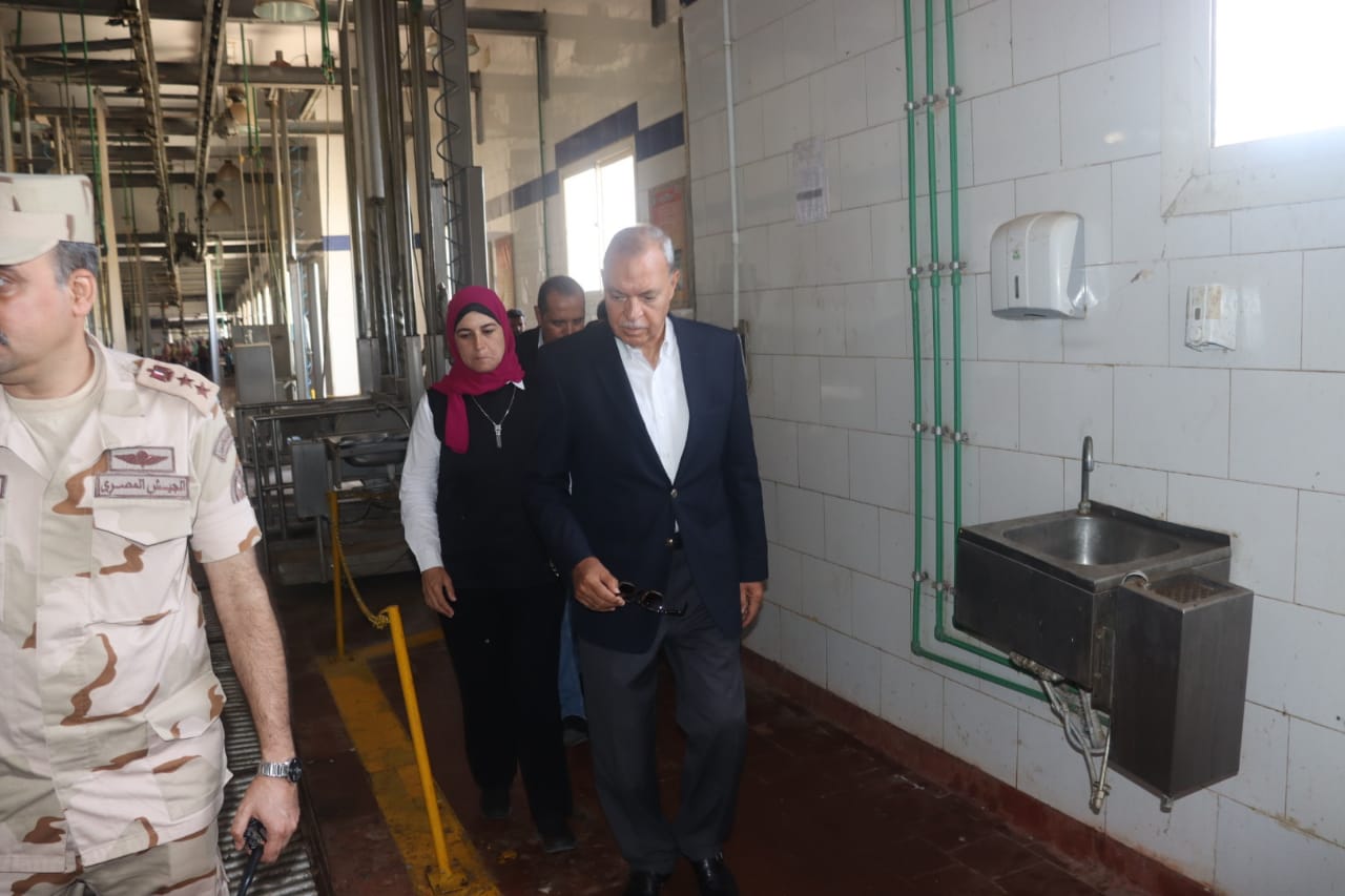 واستكمل "الهجان"، جولته بتفقد مجزر شبرا شهاب (النصف آلي- آلي- يدوي) بمدينة القناطر الخيرية التابع لجهاز مشروعات الخدمة الوطنية قطاع الأمن الغذائي التابع للقوات المسلحة، والمقام على مساحة 10 أفدنة بطاقه استيعابية للذبيح 150 رأس ماشية في اليوم، و24 ألف رأس ماشية سنويًا، وطاقة 200 رأس ضأن يومي، و30 ألف رأس سنويًا.