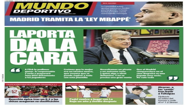 الصحف الأوروبية صباح اليوم.. موندو ديبورتيفو: لابورتا يظهر وجهه الحقيقي وليكيب تنقل تصريحات مبابي بعد الانتقال للريال