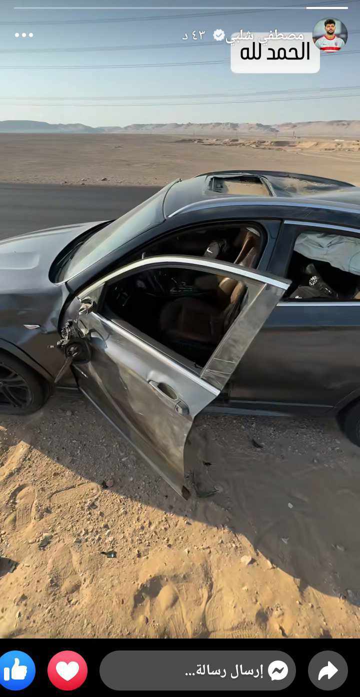 تعرض مصطفى شلبي، صانع ألعاب الفريق الأول لكرة القدم بنادي الزمالك، لحادث بسيارته اليوم، ونشر اللاعب فيديو توثيقي لسيارته بعد الحادث.