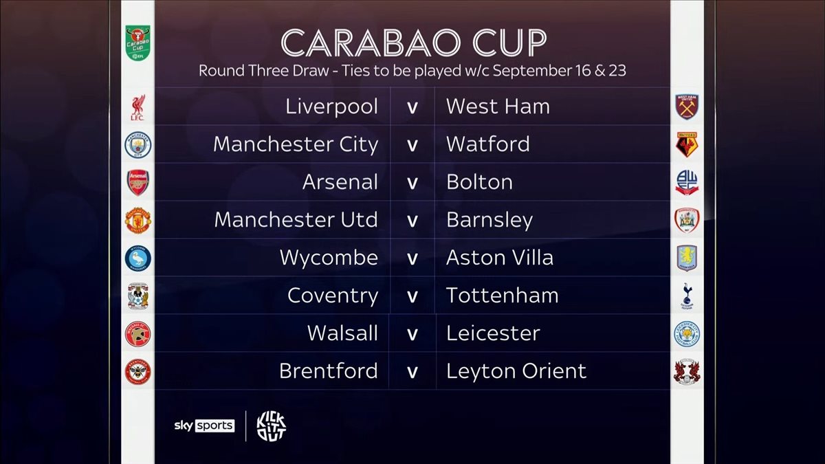 وأسفرت قرعة دور الـ32 من كأس الرابطة الإنجليزية، عن وقوع ليفربول بقيادة النجم المصري محمد صلاح في مواجهة قوية ضد وست هام، بينما سيلتقي مانشستر سيتي مع واتفورد، الناشط في دوري الدرجة الأولى.
