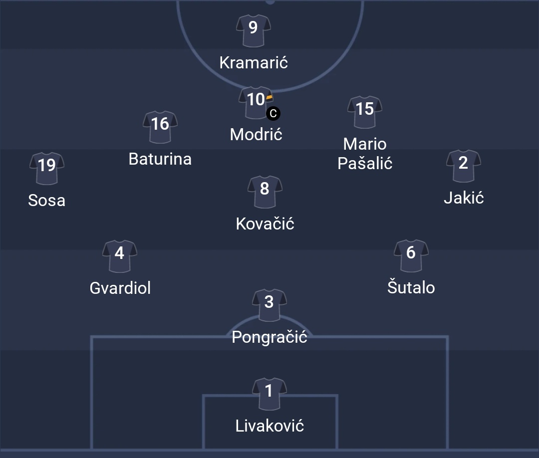- خط الهجوم: أندريح كراماريتش، ماريو باساليتش، مارتن باتورينا