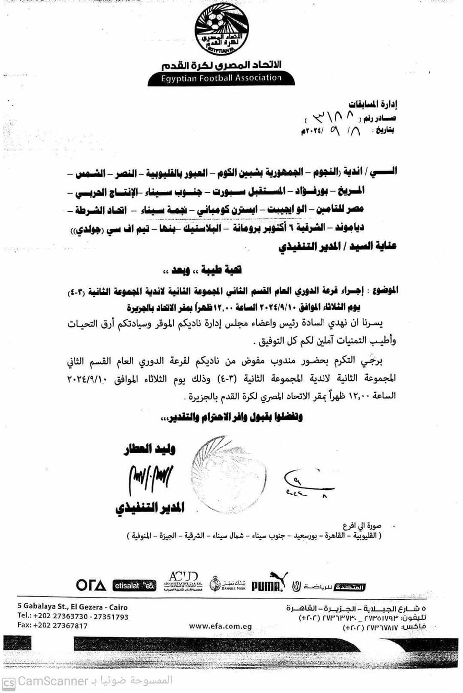 أعلن الاتحاد المصري لكرة القدم رسميًا عن موعد قرعة الدوري الممتاز "ب" للمجموعة الثانية (أ-ب) والتي ستجري غد الثلاثاء، حيث ستتوزع الفرق المشاركة في هذه المجموعة لتحديد المباريات وجدول المنافسات.