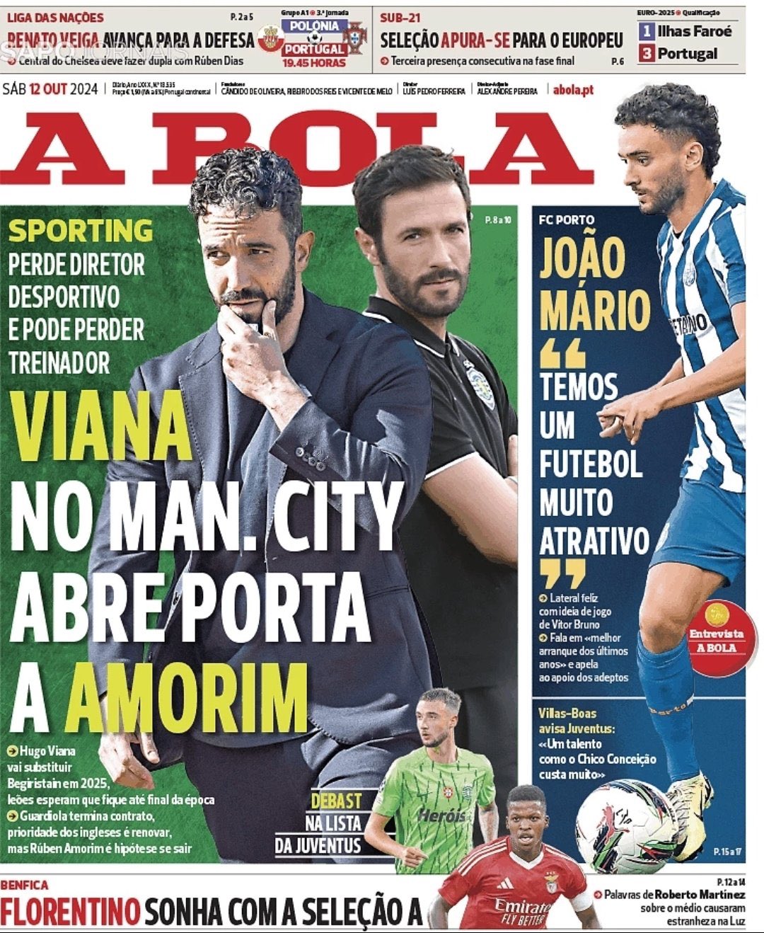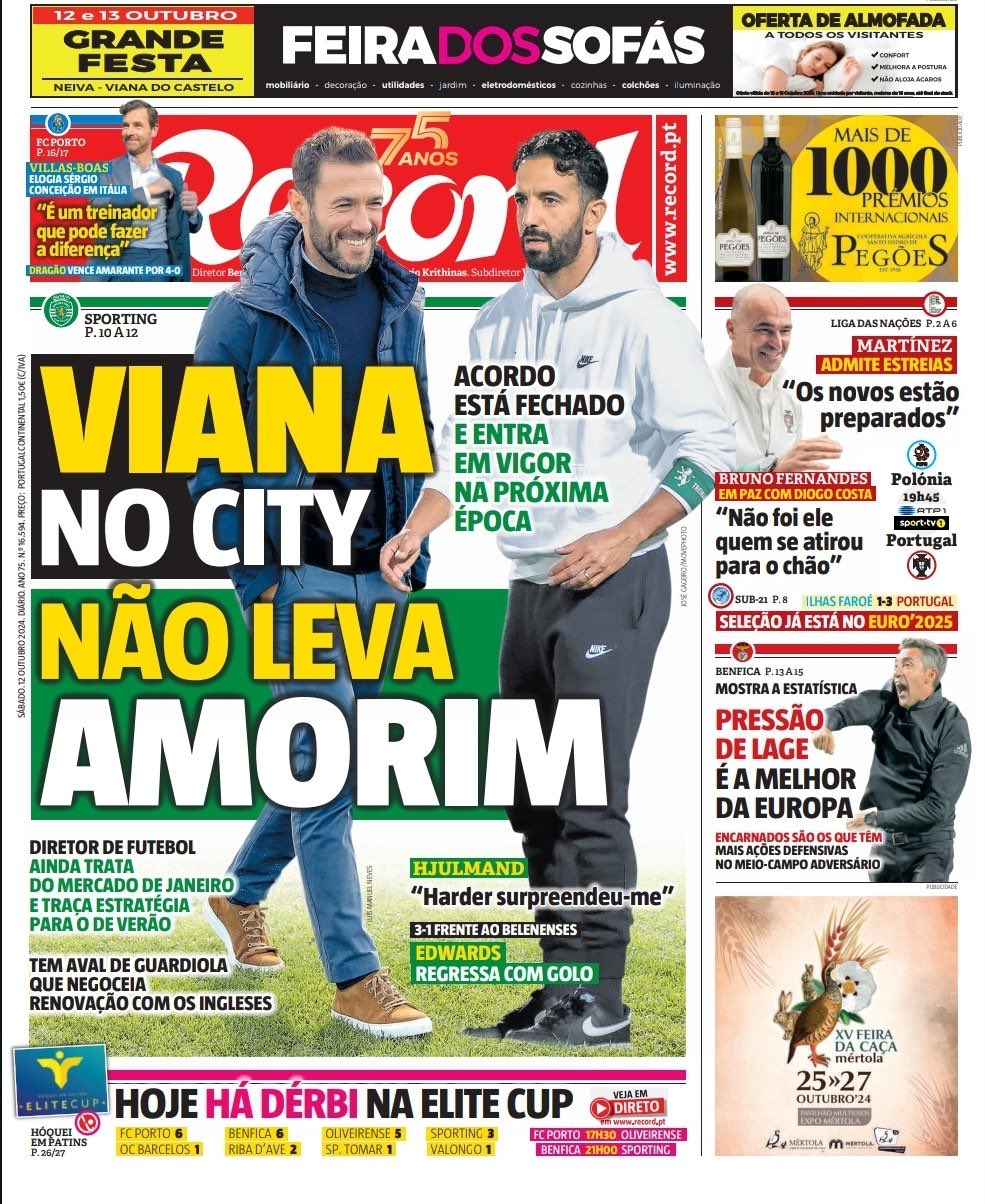 - هيوغو فيانا إلى مانشستر سيتي وقد يخسر سبورتنج مدربهم أموريهم