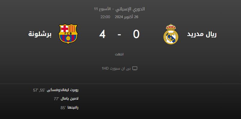 وانتهت المباراة بفوز مستحق لصالح برشلونة بنتيجة 4-0، لتصبح أهداف برشلونة اليوم هي عنوان اللقاء، إذ أثبت برشلونة أنه يمتلك القدرة على فرض سيطرته وتحقيق الفوز على أكبر الفرق، وأظهر برشلونة تكتيكًا متماسكًا في جميع مراحل المباراة، مستفيدًا من قوته الهجومية وتماسكه الدفاعي، بينما على الجانب الآخر، يحتاج ريال مدريد لإعادة تقييم أدائه، خاصة فيما يتعلق بالدفاع والاستفادة من الفرص، حيث كلفتهم الأخطاء غاليًا في هذا اللقاء.