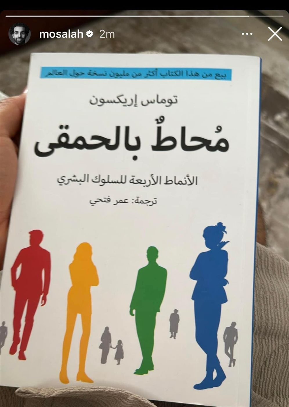 ونشر "صلاح" في الساعات الماضية، عبر حسابه على موقع "انستجرام" صورة لإحدى صفحات كتاب "محاط بالمرضى النفسيين" للكاتب توماس إريكسون، وجاء عنوان الصفحة "من هم المختلون نفسيًا؟ وتتحدث عن تصنيف اتخاذ القرارت، ما بين قرارت تعتمد على المنطق وأخرى تعتمد على العاطفة.