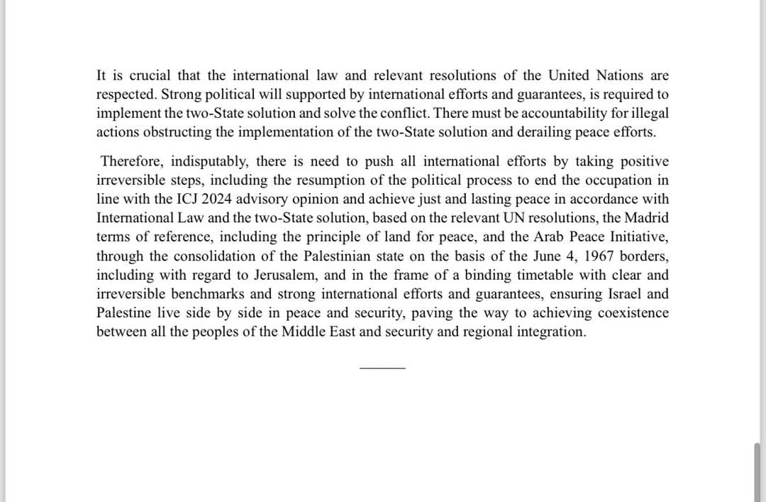 استعرض وزير الخارجية خلال مداخلته الخطة العربية الإسلامية لإعادة الإعمار ومؤتمر إعادة الإعمار المقرر عقده في مصر فور التوصل لوقف إطلاق النار في القطاع، كما قدم شرحًا لما سيتضمنه المؤتمر من ورش عمل ودور القطاع الخاص وشركاته، مشددًا على موقف مصر الرافض لتهجير الفلسطينيين من أرضهم أو خلق بيئة ضاغطة على الفلسطينيين لإجبارهم على الخروج من أرضهم باعتباره تهجيرًا قسريًا وليس هجرة طوعية.