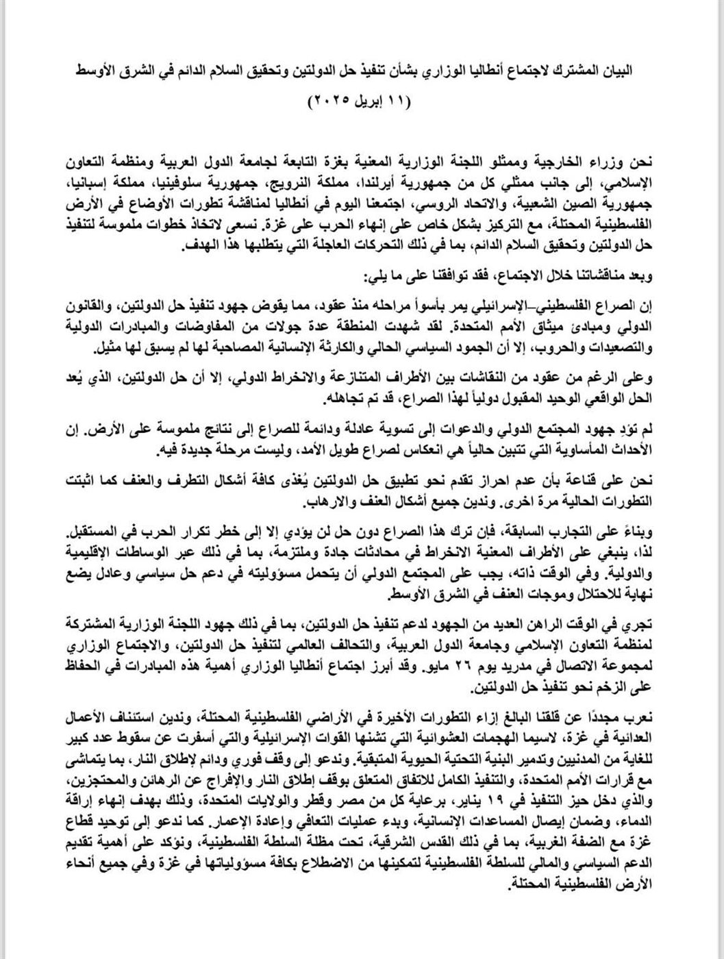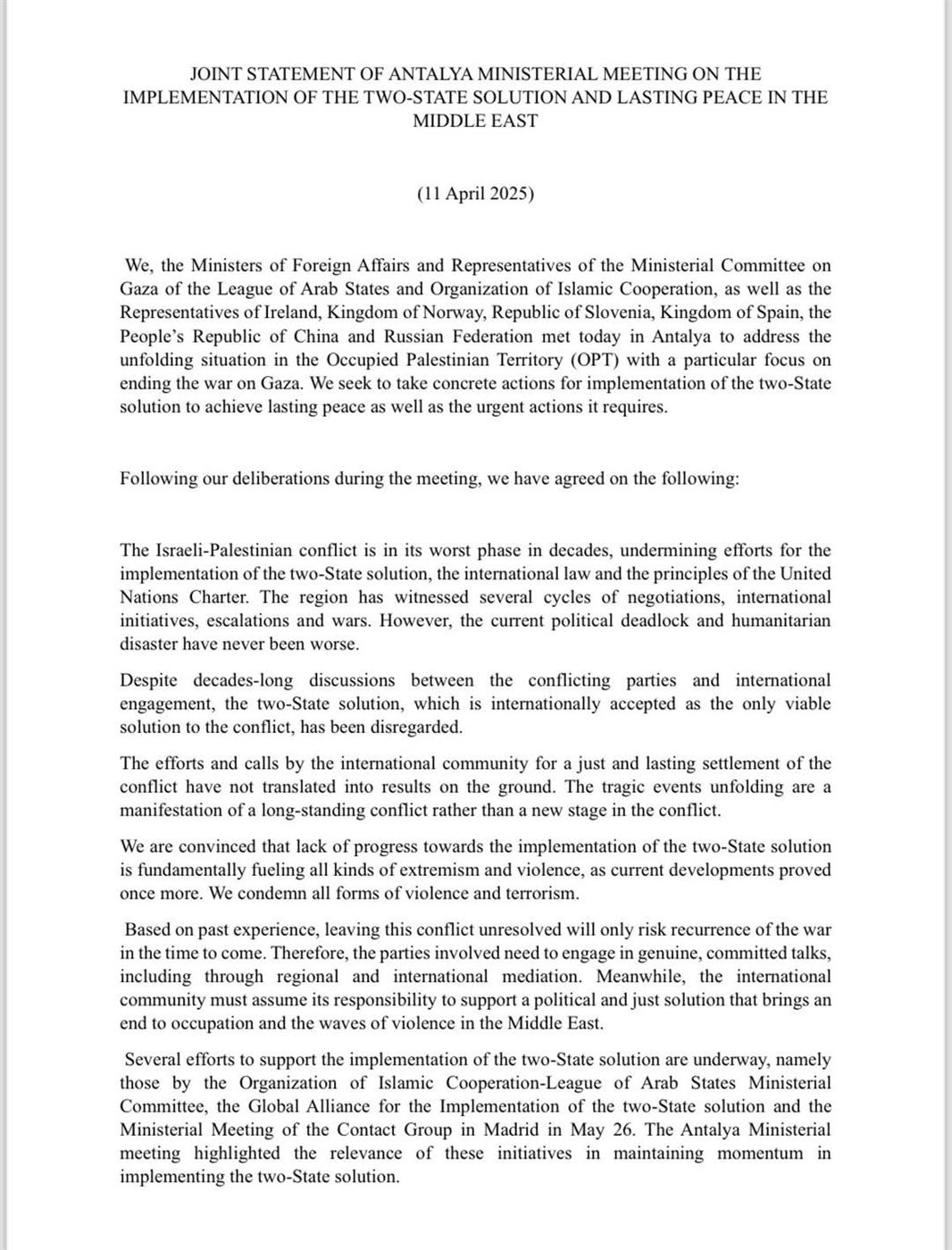 اجتمع وزراء الخارجية وممثلو اللجنة المعنية بغزة في جامعة الدول العربية ومنظمة التعاون الإسلامي، إلى جانب ممثلي كلا من جمهورية أيرلندا، مملكة النرويج، جمهورية سلوفينيا، مملكة إسبانيا، جمهورية الصين الشعبية، والاتحاد الروسي، اليوم في أنطاليا، لمناقشة الأوضاع في الأراضي الفلسطينية المحتلة، مع التركيز بشكل خاص على إنهاء الحرب.