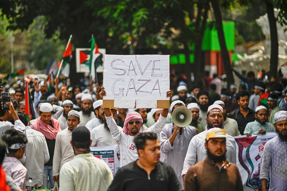 تظاهر قرابة 100 ألف شخص اليوم السبت في العاصمة البنغلاديشية دكا، مرددين شعارات مناهضة لإسرائيل ومنددين بالحرب الإسرائيلية المستمرة على قطاع غزة منذ نحو عام ونصف.