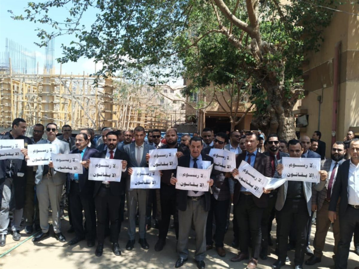 محاميو المنيا ينظمون وقفة احتجاجية ضد زيادة الرسوم القضائية