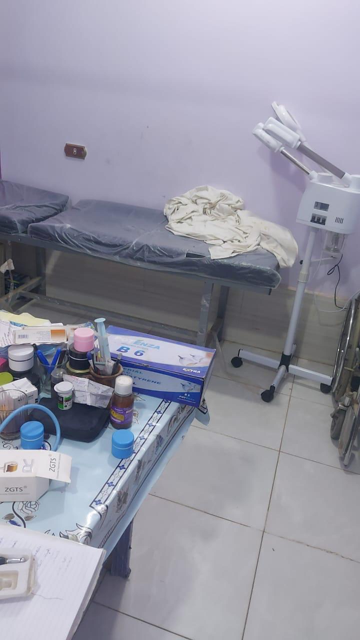 وخلال التفتيش، رصدت اللجنة غرفتين مجهزتين للكشف تحتويان على أسرّة وأجهزة طبية، من بينها جهاز حقن اختراقي للجلد، وجهاز قياس ضغط وسماعة طبية، بالإضافة إلى جهازين للمساج الكهربائي، ما يدل على محاولة المتهم إضفاء طابع احترافي زائف على المكان.
