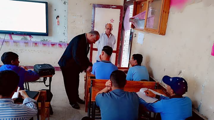 ثم انتقل وكيل الوزارة إلى مدرسة المستقبل الرسمية المتميزة للغات - القسم الإعدادي والثانوي، حيث تابع انتظام الحصص الدراسية، وحضر حصة لغة عربية بالصف الثاني الثانوي، وناقش الطلاب للوقوف على مستوى تحصيلهم. كما نبه على ضرورة الانتهاء من مناهج المواد الأساسية، خاصة مادة الكيمياء بالمرحلة الثانوية، مؤكدًا أهمية تهيئة بيئة تعليمية جاذبة ونظيفة للطلاب.