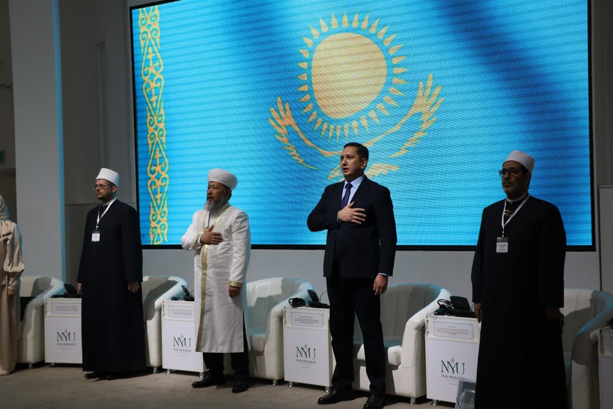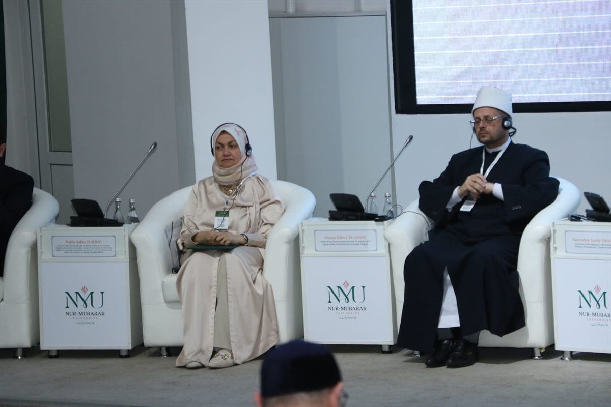 وبدأ كلمته بنقل رسالةِ تقديرٍ وتوقيرٍ وإعزازٍ وإجلال، من الدكتور أسامة الأزهري وزيرِ الأوقاف، مع خالص دعمِه وتمنياته لهذا المؤتمر بكل التوفيق، وتقديرِه للقائمين على تنظيم هذا المؤتمر المهم، والذي تنظمُه الجامعة المصرية للثقافة الإسلامية نور مبارك، بالتعاون مع الإدارة الدينية لمسلمي كازاخستان.