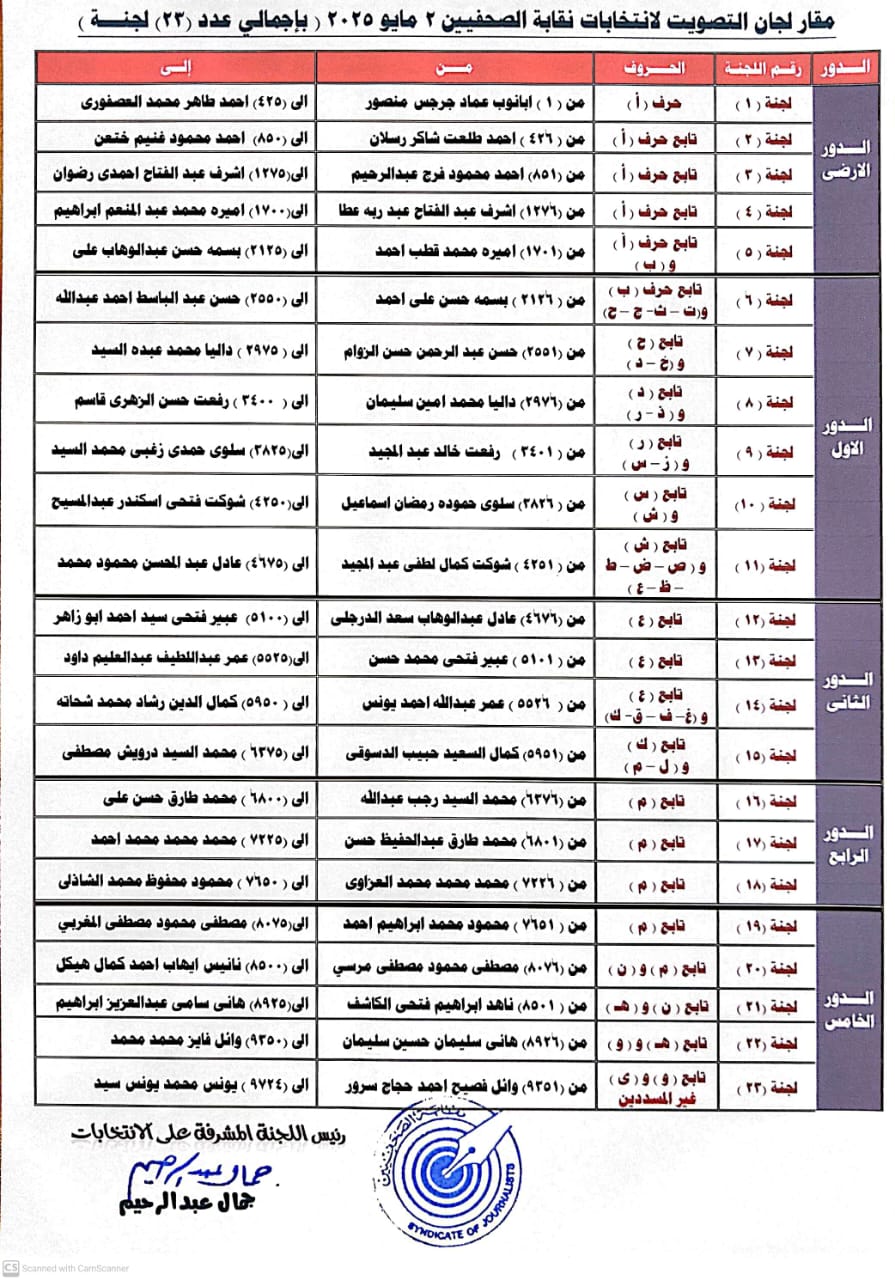 وتضع اللجنة المُشرفة كشفًا مدوّن به أسماء المُرشحين في كل لجنة، لمساعدة الزملاء على انتخاب مُرشحيهم، وذلك بالترتيب الأبجدي.