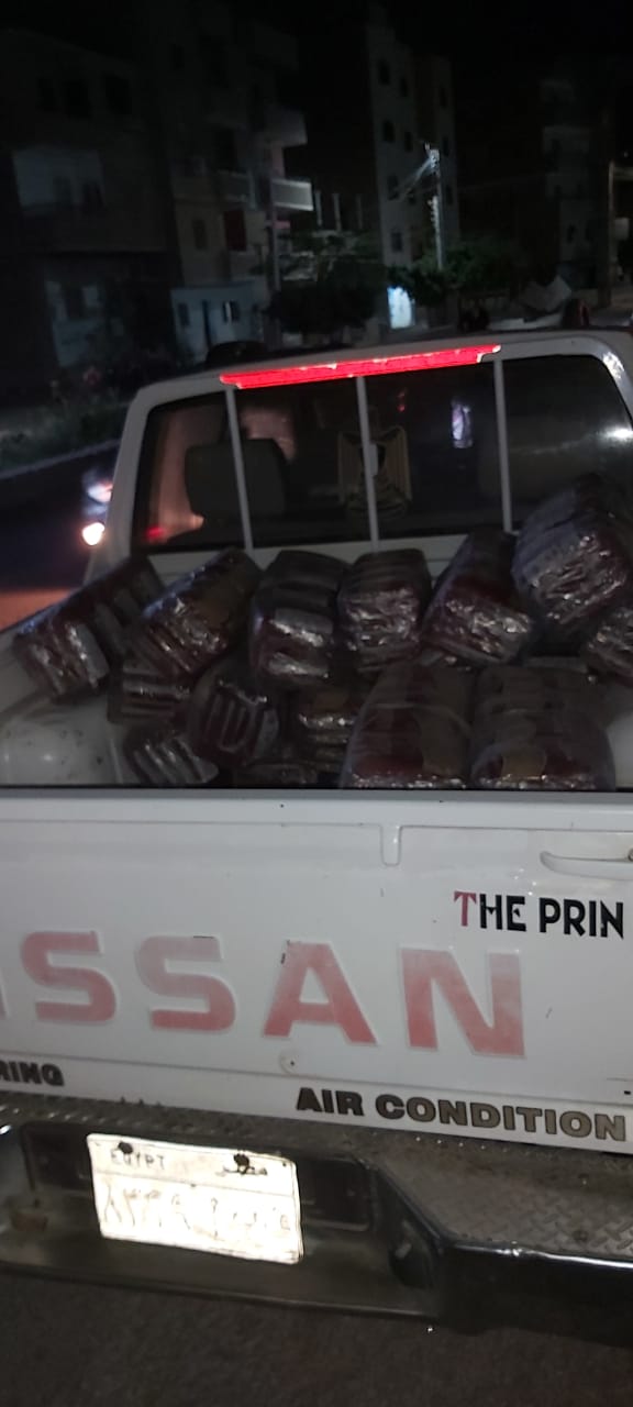 - 15 شيكارة دقيق بلدي زنة 50 كجم على أحد التروسيكلات (بإجمالي 750 كجم).