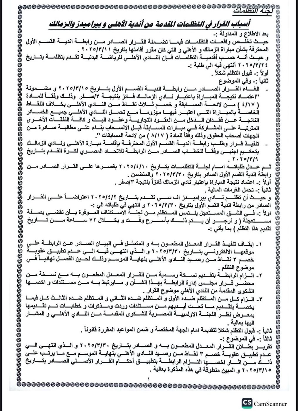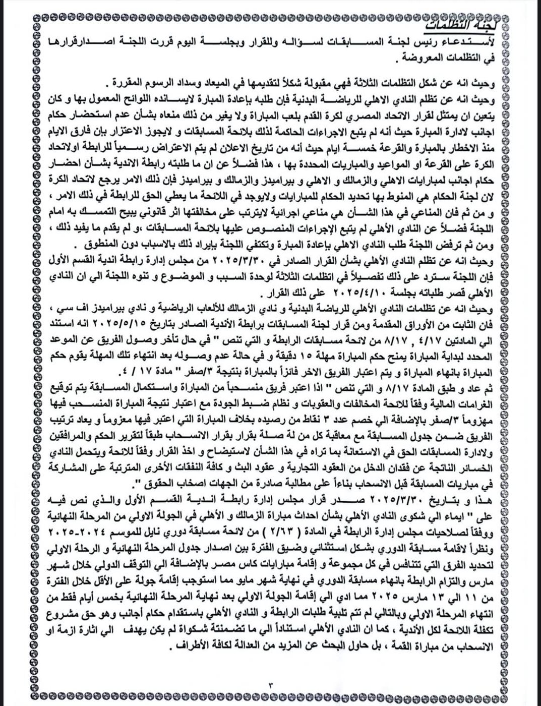 رسميًا.. حيثيات لجنة الانضباط باعتماد قرار رابطة الأندية بخصم 3 نقاط فقط من النادي الأهلي بخصوص أزمة مباراة القمة