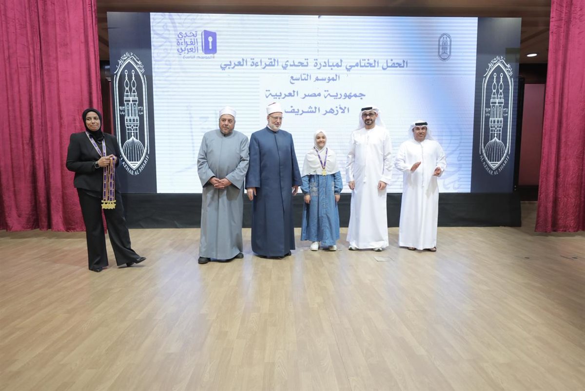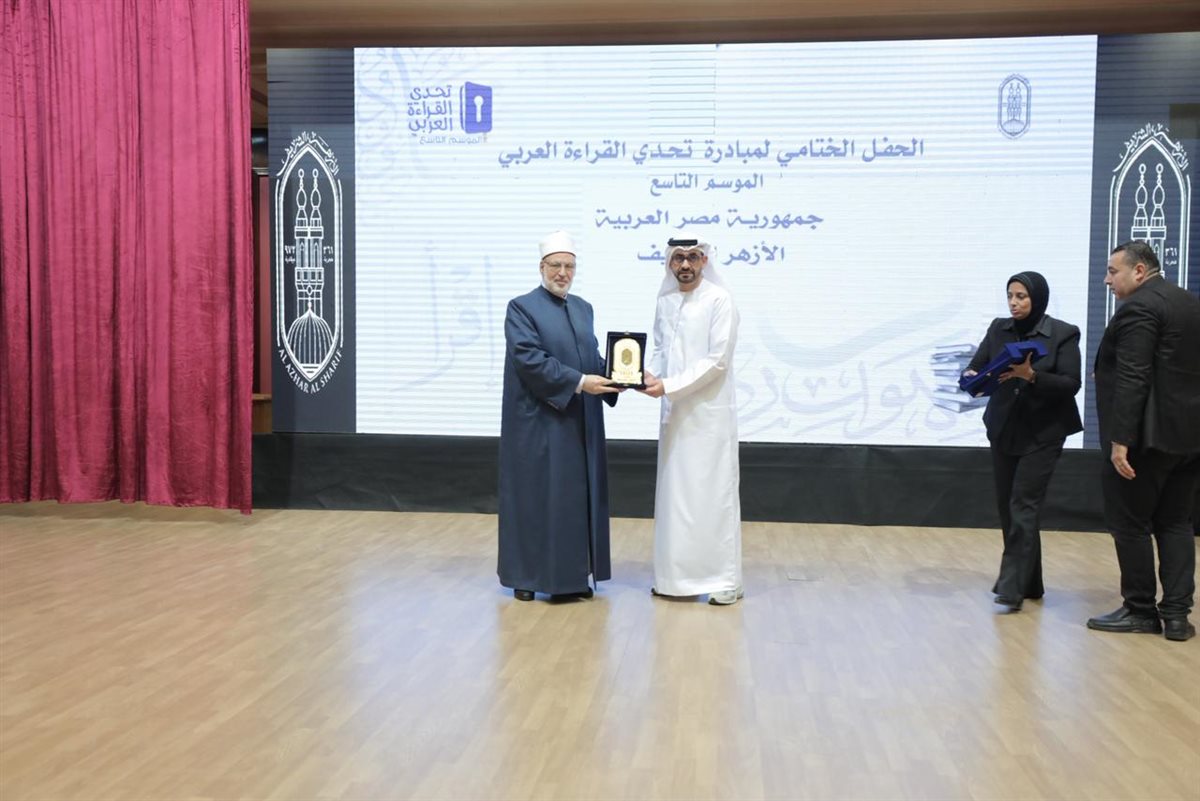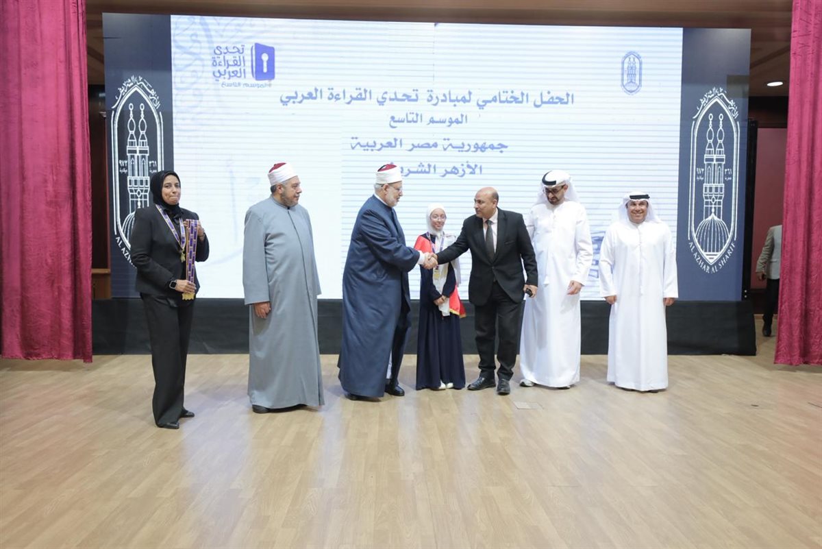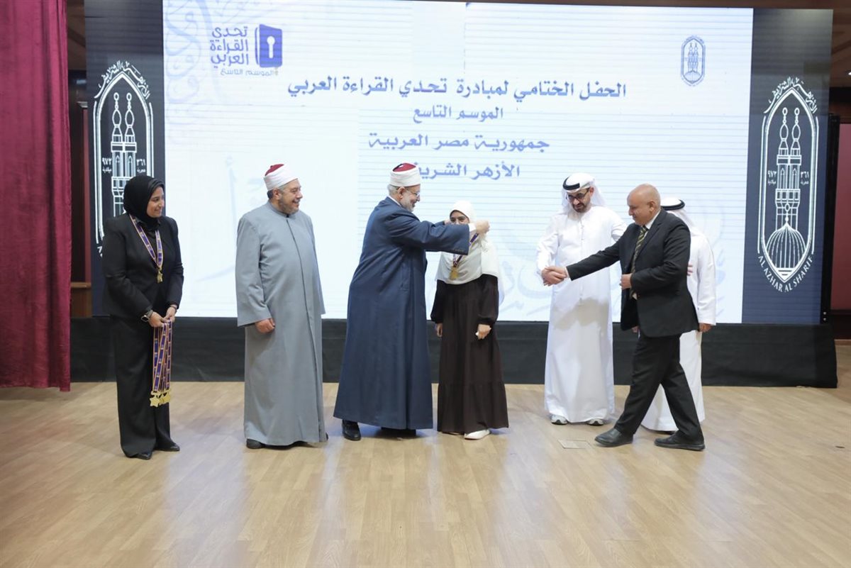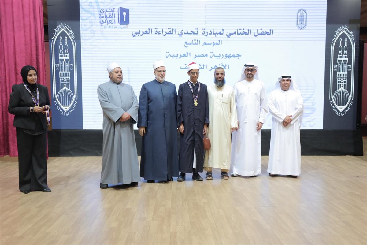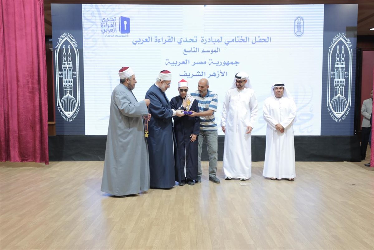 نظم الأزهر الشريف بالتعاون مع مؤسسة مبادرات محمد بن راشد آل مكتوم العالمية حفلًا مهيبًا للإعلان عن أسماء الفائزين في مسابقة «تحدي القراءة العربي» للموسم التاسع، وذلك بحضور الدكتور /محمد الضويني، وكيل الأزهر الشريف، ود/فوزان الخالدي، مدير إدارة البرامج والمبادرات بمؤسسة مبادرات محمد بن راشد آل مكتوم العالمية، والشيخ أيمن عبد الغني، رئيس قطاع المعاهد الأزهرية، إلى جانب عدد من علماء الأزهر وقياداته التربوية، وشخصيات إعلامية وثقافية بارزة.