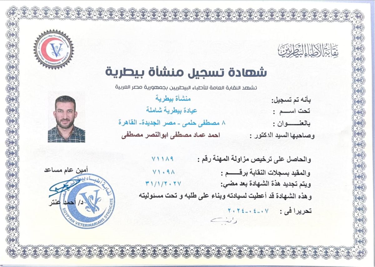 وأوضحت النقابة أنها تقدّم الدعم الكامل للطبيب أحمد عماد، وتحرص على توفير كل وسائل الحماية والدعم النفسي والمهني له، مؤكدة وقوفها إلى جانب أي طبيب بيطري يتعرض لمواقف مماثلة.