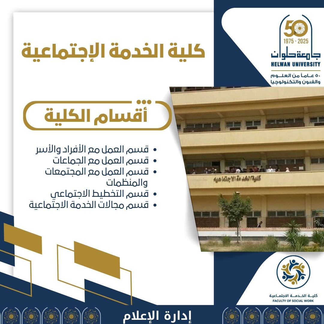تبرز كلية الخدمة الاجتماعية بجامعة حلوان كأحد أعرق الكليات المتخصصة في إعداد الأخصائيين الاجتماعيين.