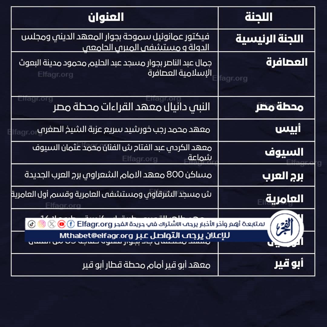 وشملت مراكز الفتوى، المركز الرئيسي بمنطقة سموحة ويليها المراكز الفرعية بالمناطق، العصافرة، محطة مصر، أبيس، السيوف، برج العرب، العامرية، العجمي، الورديان، وأبوقير، مرفقة بالجداول المنشورة على الصفحة الرسمية عناوين كلًا منها بالتحديد.