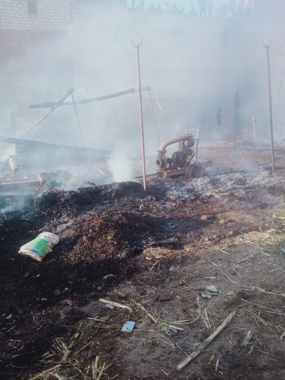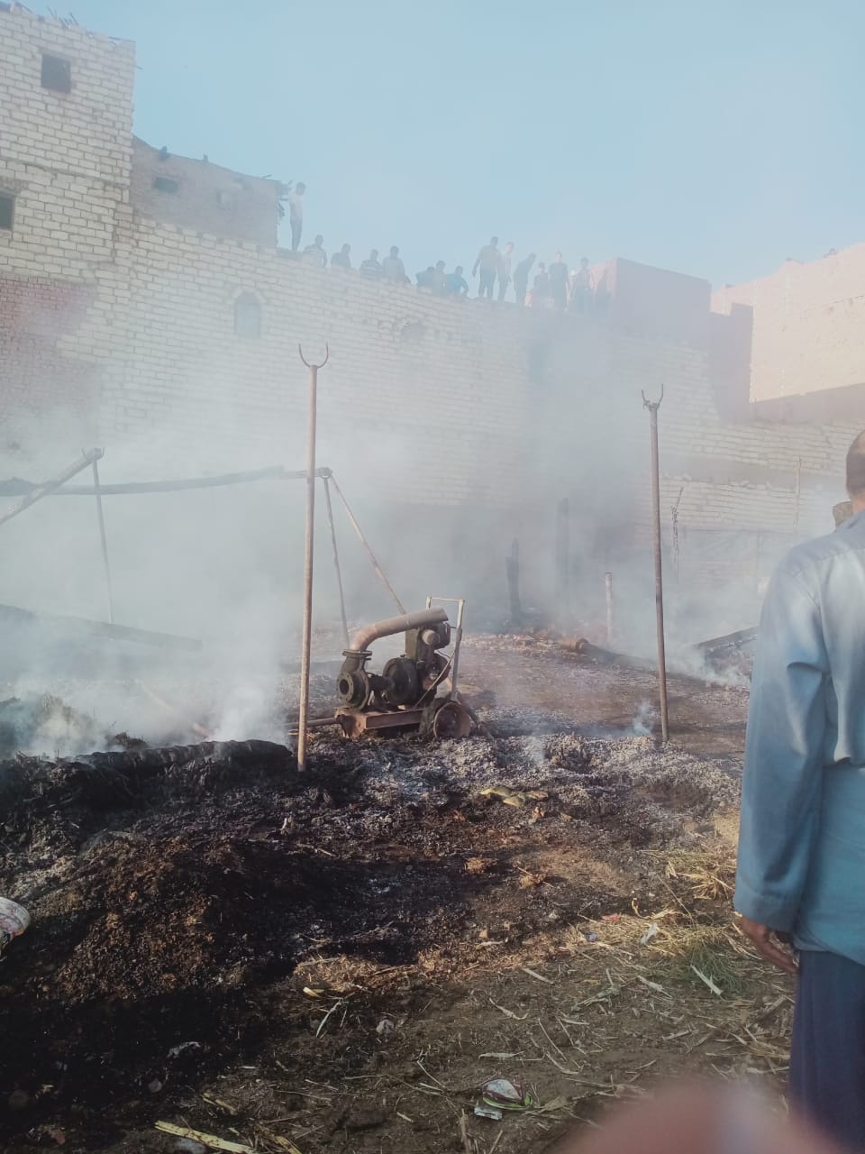 السيطرة على حريق حظيرة مواشي قرية بني عفان في بني سويف