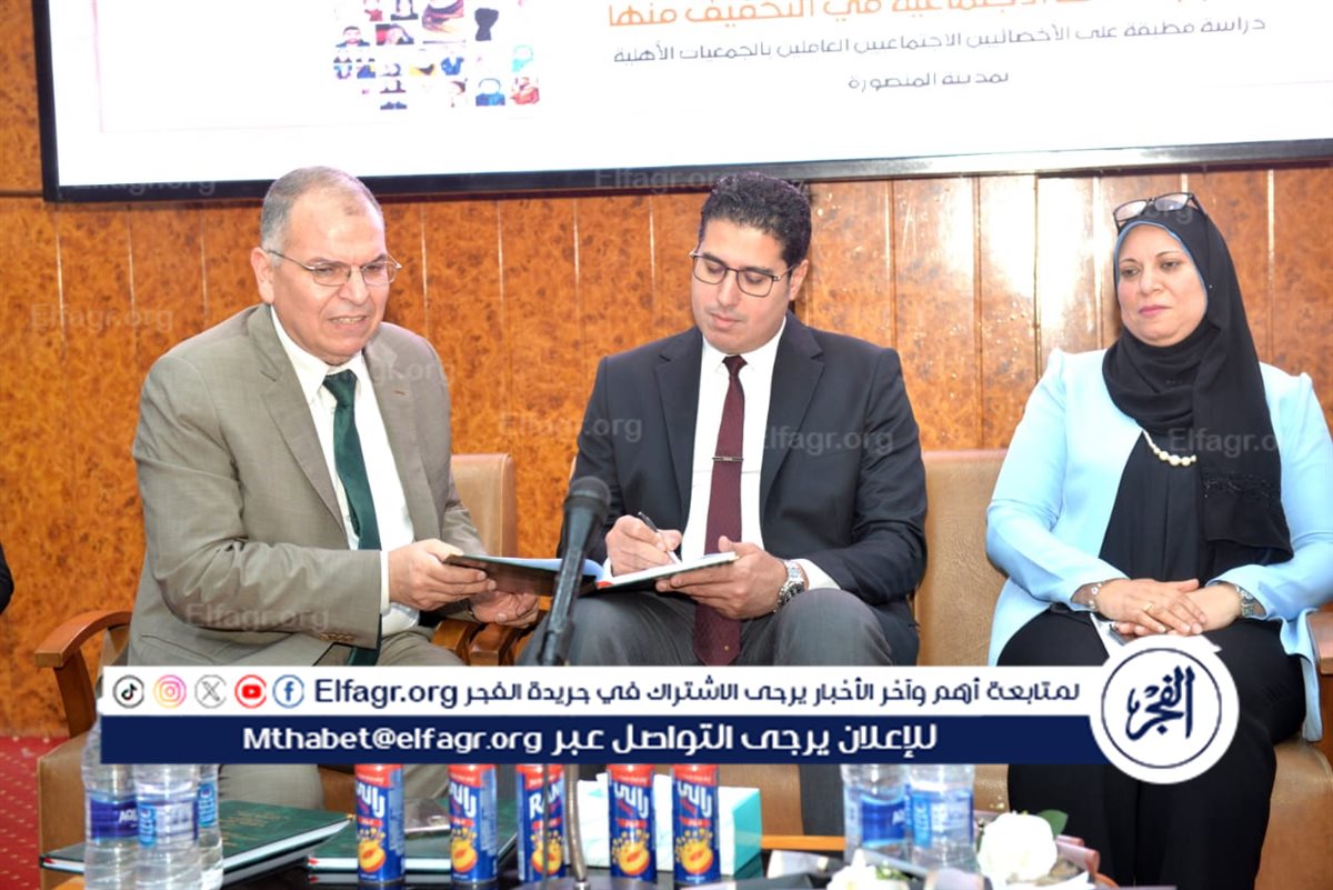 وناقش نائب المحافظ الطلاب في مشروع التخرج الذي حمل عنوان "الضغوط الحياتية لدى المرأة المعيلة ودور الخدمة الاجتماعية فى التخفيف منها" دراسة تطبيقية على الاخصائيين الاجتماعيين العاملين بالجمعيات الأهلية بمدينة المنصورة، والمرأة المعيلة من المستفيدات من الجمعيات الأهلية، كما ناقشت وكيل وزارة التضامن، الطلبه حول دور التضامن الإجتماعي، ودور الأخصائي الإجتماعي ببحث حالات المرأة المعيلة وتقديم كافة خدمات التضامن الاجتماعي لهن من حيث الخدمات الإجتماعية أو المساعدات المادية لهن.
