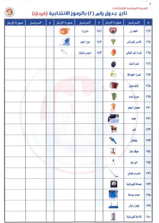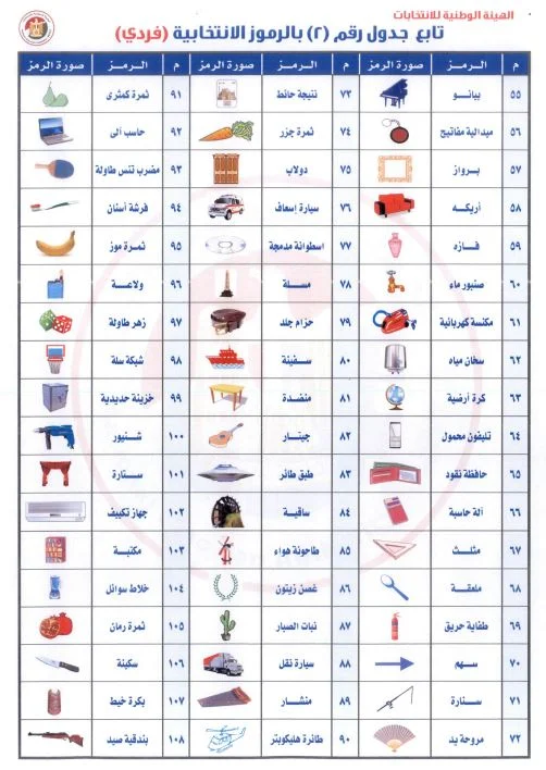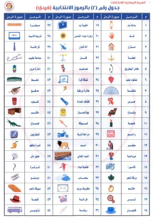 رموز المرشحين بالنظام الفردي