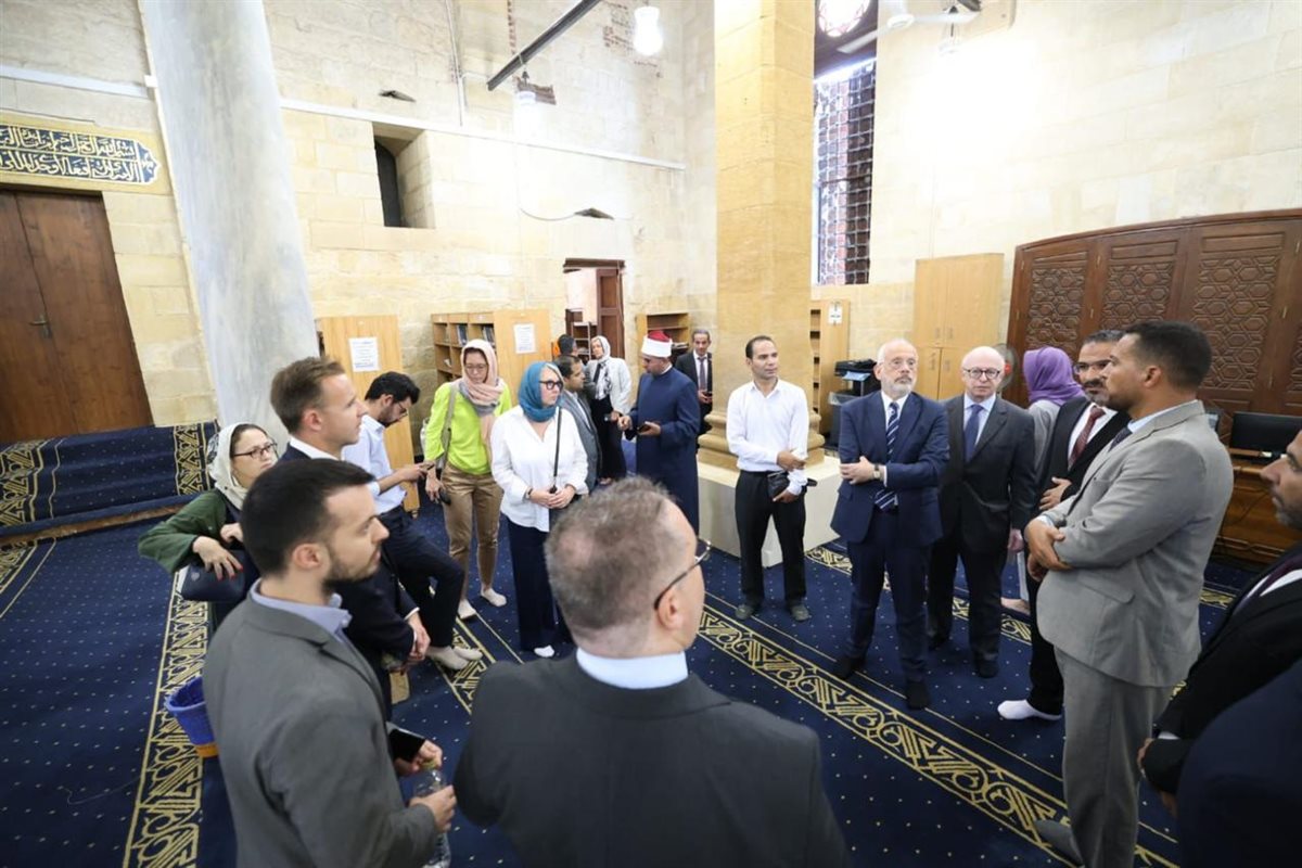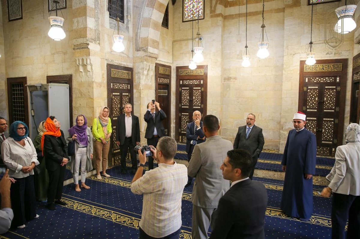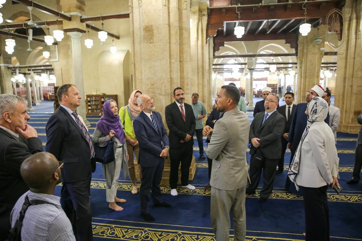 هذا؛ وقد قام الوفد بجولة تفقدية للجامع الأزهر، للتعرف على ما يميز هذا المعلم التاريخي الفريد من تحف فنية ومعمارية نادرة، حيث استمع الوفد إلى شرح تفصيلي حول تاريخ الجامع الأزهر، والأنشطة التى يقدمها لخدمة العلوم الإسلامية لطلاب العلم من شتى بقاع الأرض، مع استعراض بعض الأنشطة العلمية التي يتم تنفيذها بالجامع الأزهر، والتي تشمل شرح كتب التراث ورواق العلوم الشرعية والعربية والقرآن والتجويد، ومقارئ القرآن الكريم بالقراءات العشر بالجامع الأزهر.