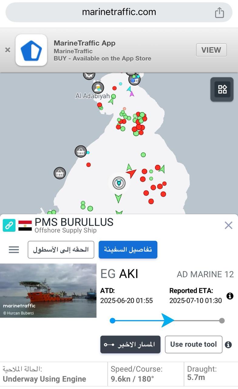فى اطار التطورات الخبرية لجهود البحث عن المفقودين الثلاثة بحادث البارج أدمارين 12 ، تشارك السفينة البرلس pms فى عمليات البحث خلال الساعات القليلة المقبلة بمنطقة جبل الزيت التي شهدت واقعة الغرف