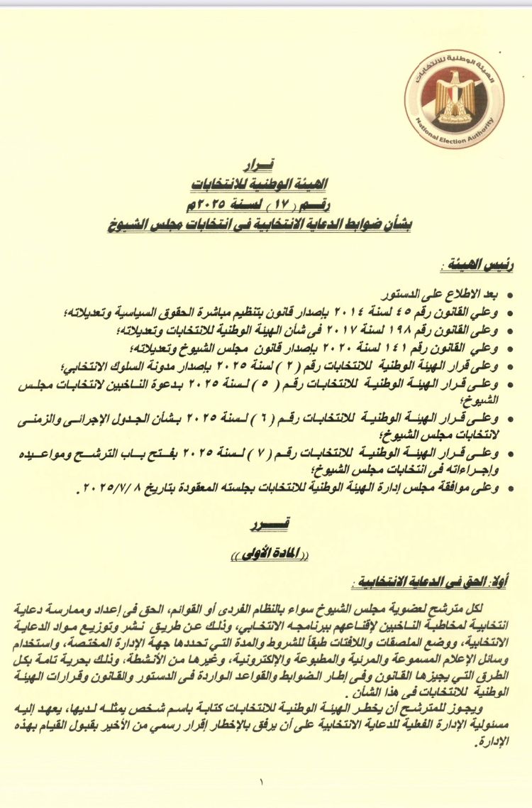 أعلنت الهيئة الوطنية للانتخابات، ضوابط الدعاية الانتخابية للمرشحين في انتخابات مجلس الشيوخ 2025.