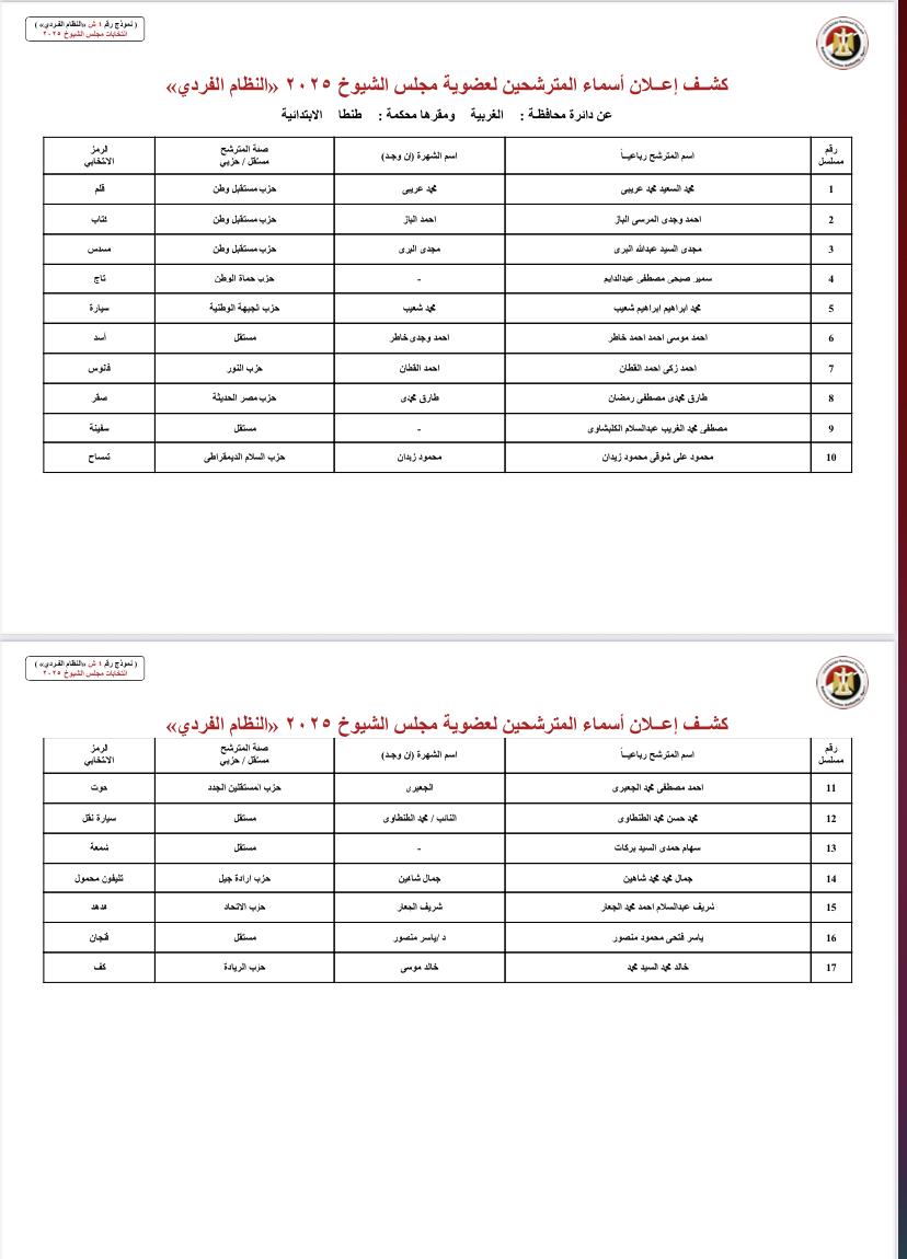 القوائم الكاملة لأسماء ورموز مرشحي انتخابات مجلس الشيوخ 2025 في جميع محافظات مصر