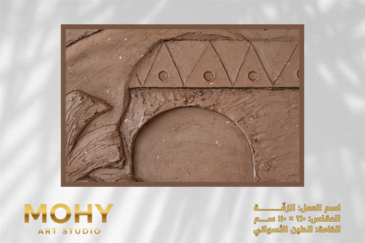 بعيدًا عن النمط التقليدي الذي قد يسلكه بعض خريجي الفنون، قرر مصطفى أن يعود إلى الجذور، حيث الشارع، والأهالي، والدفوف، والفرح البسيط، ليُترجم كل هذا في عمل جداري مصنوع من الطين الأسواني، بمقاس ٢١٠×١١٠ سم، بأسلوب تجريدي تعبيري يحمل ملامح الفن الشعبي المصري دون أن يقع في فخ المباشرة أو الاستنساخ.