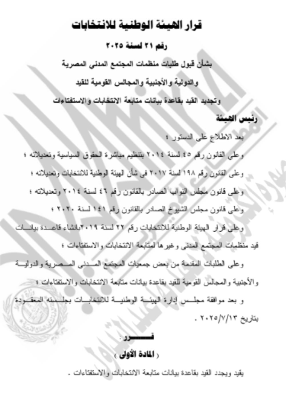 الهيئة الوطنية للانتخابات تشكل لجان لرصد مخالفات دعاية انتخابات مجلس الشيوخ 2025
