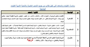 وسيتم توزيعهم على الكليات وفقًا للترتيب الذي حددته وزارة التربية والتعليم.