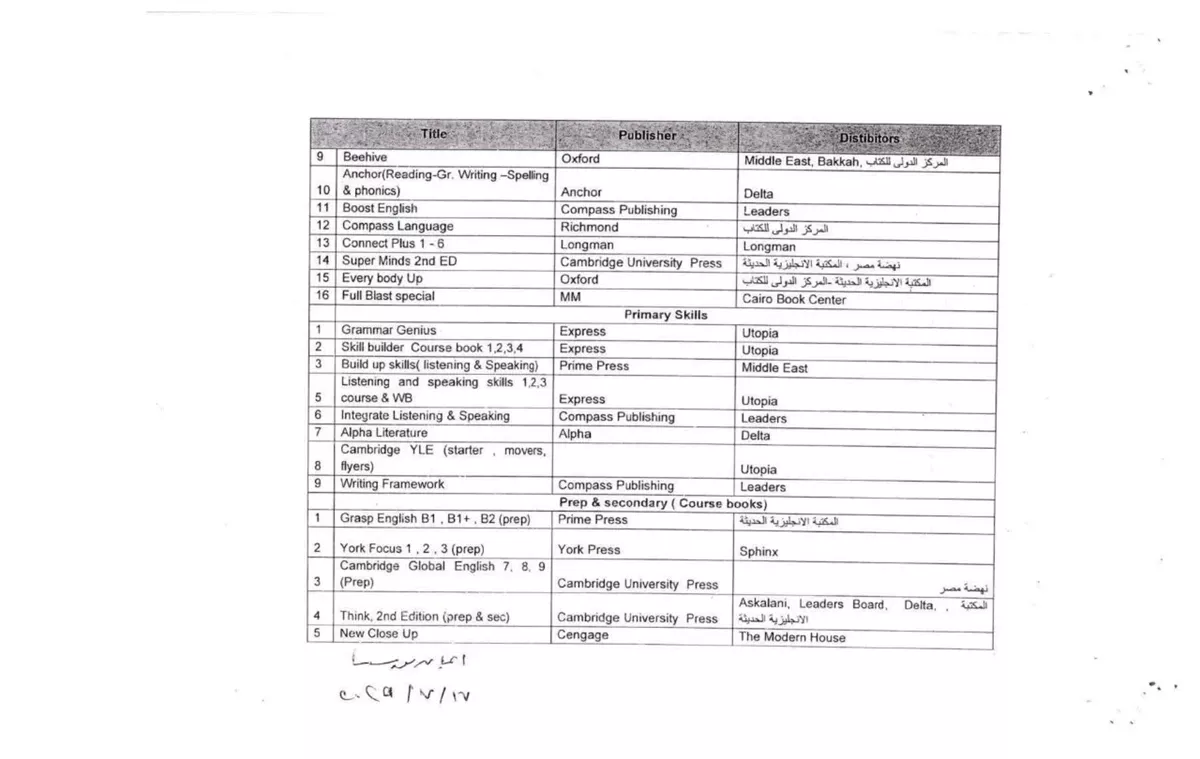 أوضحت الوزارة أن الكتب المعتمدة تخص مادة اللغة الإنجليزية للمستوى الرفيع، ووجهت بضرورة التزام المدارس الخاصة والمديريات التعليمية بالعمل بالقائمة المحددة وفق القواعد والتعليمات الرسمية.