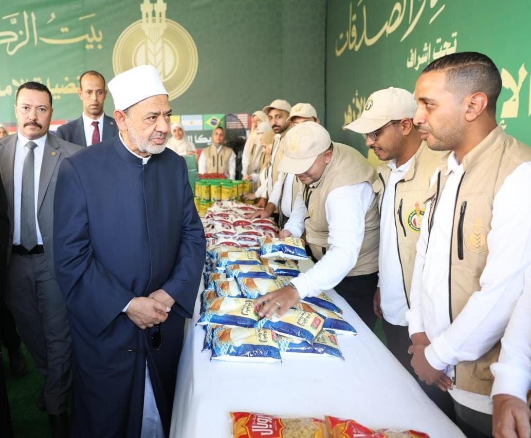 شيخ الأزهر يتفقَّد تجهيزات القافلة الإغاثية التي يطلقها بيت الزكاة لقطاع غزة