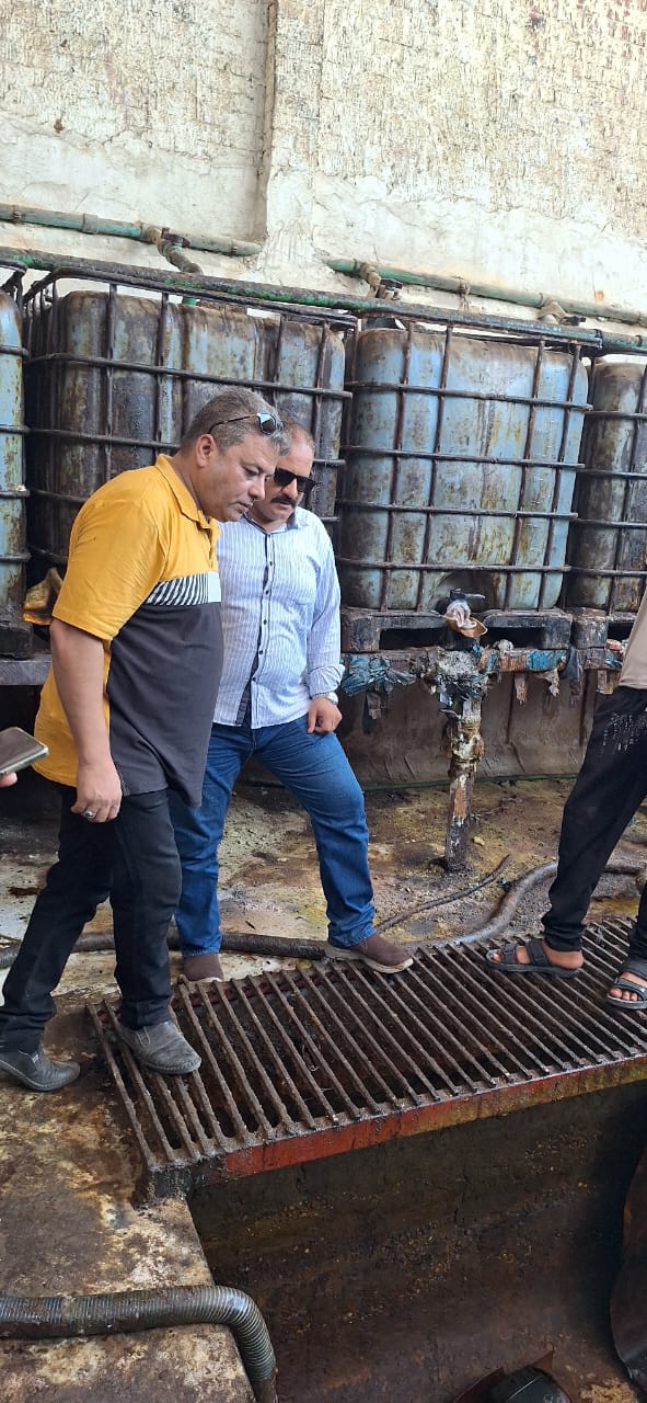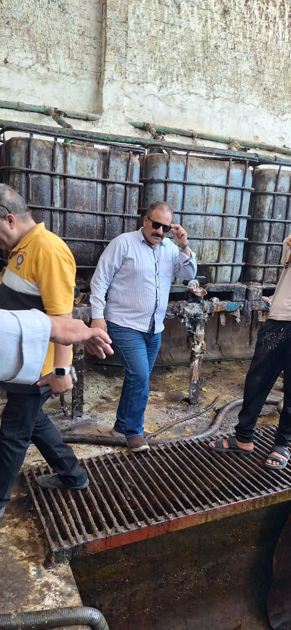 وخلال الحملة، تم ضبط أحد المصانع غير المرخصة بدائرة المركز، حيث عُثر بداخله على خمسة أطنان من الزيوت التالفة تحتوي على رواسب ورغاوي، وبالفحص تبيّن عدم صلاحيتها لأي استخدام أو إعادة تدوير، فضلًا عن عدم توافر أي مستندات أو فواتير تثبت مصدرها.