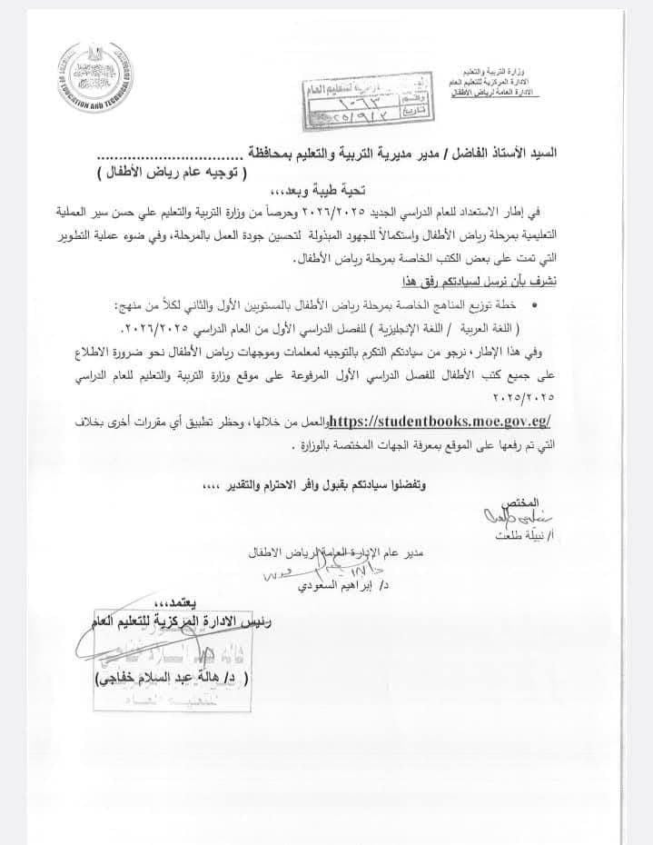 وشددت وزارة التربية والتعليم في خطابها المرسل إلى المديريات التعليمية على ضرورة التزام معلمات وموجهات رياض الأطفال بالاطلاع على جميع الكتب المقررة والمرفوعة عبر الموقع الرسمي للوزارة، والعمل بها بشكل كامل دون إدخال أي مقررات أو مواد إضافية من خارج المنهج المعتمد.