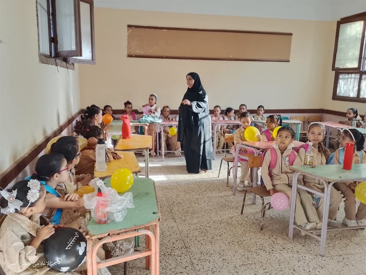 توزيع البلالين والأعلام على التلاميذ يتصدر مشهد أول يوم دراسة ببني سويف (صور)