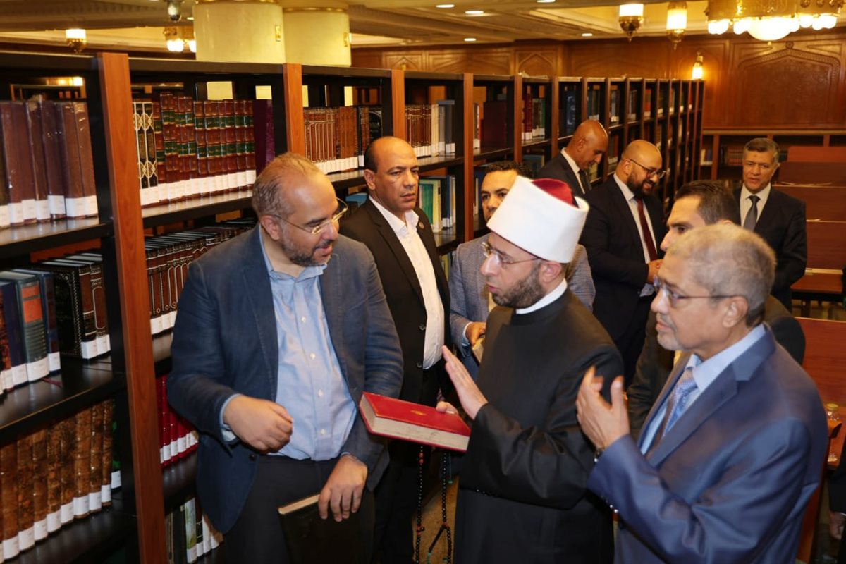 وعقب الصلاة افتتح الوزير مكتبة "الراوي للعلوم العقلية" بمسجد الرحمن الرحيم، مؤكدًا في كلمته أن تلك المكتبة تجمع الجواهر النفسية النادرة من كتب الفلسفة وعلم الكلام وعلم المنطق وعلم أصول الفقه، مشيرًا إلى وجود رؤية وخطة طموحة لتحويل المكتبة النفيسة إلى مركز متخصص في تدريب شباب الأئمة وغيرهم؛ لتكوين جيل يعتني بتأسيس الخطاب الديني على فكر عقلي حر ومبدع، يقفز بنا قفزة كبيرة في نقد أطروحات النسبية المطلقة أو الإلحاد أو غير ذلك من المقولات، ويشتبك مع أطروحات العصر ومقولاته بما يؤسس لميلاد تجديد حقيقي يُوجِد موضع قدم لرؤيتنا وحضارتنا بين طوفان فلسفات العصر، ويبشر بميلاد طرح علمي نهضوي عقلي يرسخ منطق الإيمان واليقين، ويؤسس لانطلاق قوي إلى صناعة الحضارة.