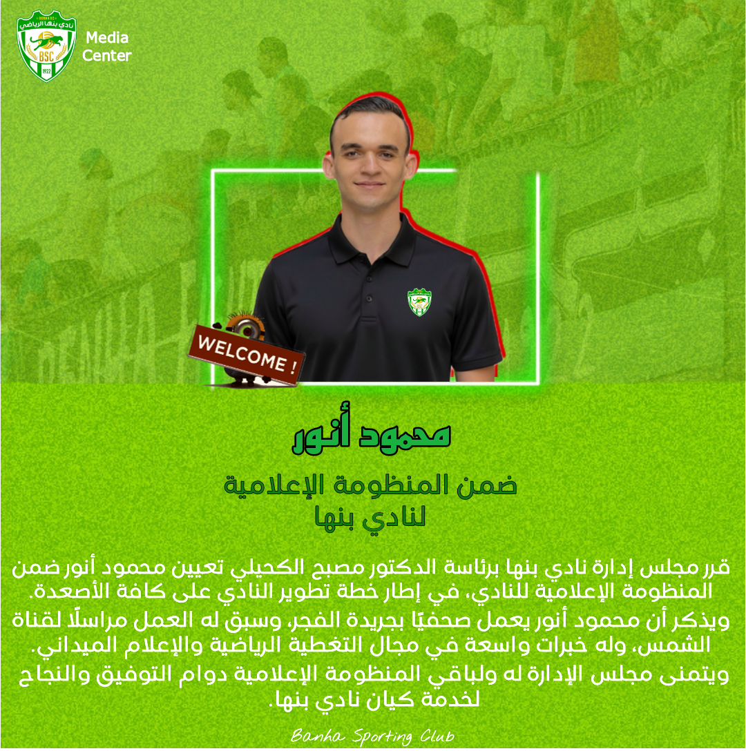وتمنى مجلس الإدارة دوام التوفيق والنجاح لمحمود أنور في مهمته الجديدة، وأن يكون إضافة قوية للمنظومة الإعلامية وللكيان البنهاوي الكبير.