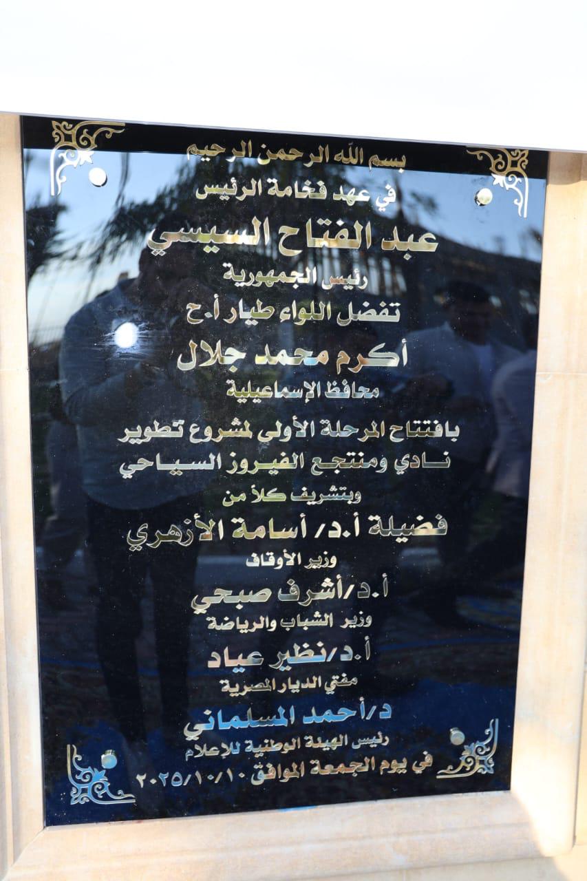 كما اختتمت الزيارة بالمشاركة في افتتاح المرحلة الأولى من مشروع تطوير منتجع الفيروز السياحي بمدينة الإسماعيلية، ضمن فعاليات الاحتفال، الذي يتزامن مع ذكرى انتصارات أكتوبر المجيدة، في إطار خطة الدولة لتطوير المنشآت السياحية والخدمية بالمحافظة، وتعزيز البنية التحتية لمناطق الجذب السياحي.