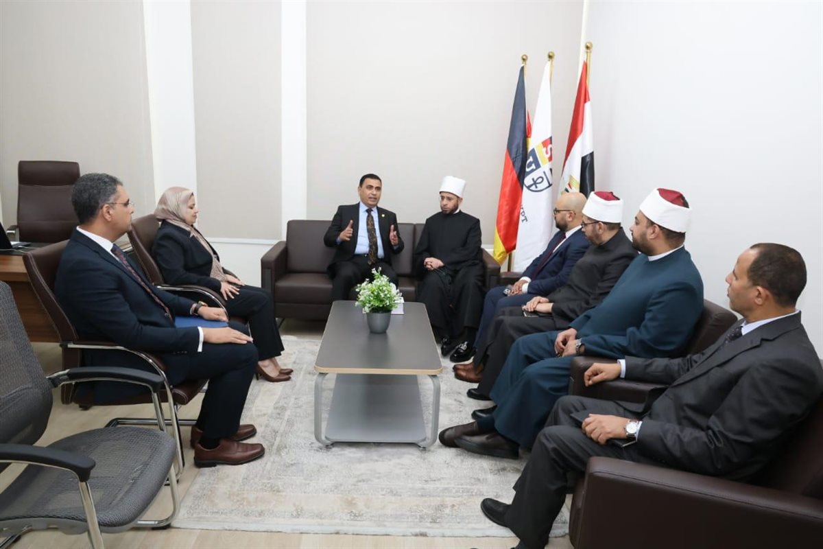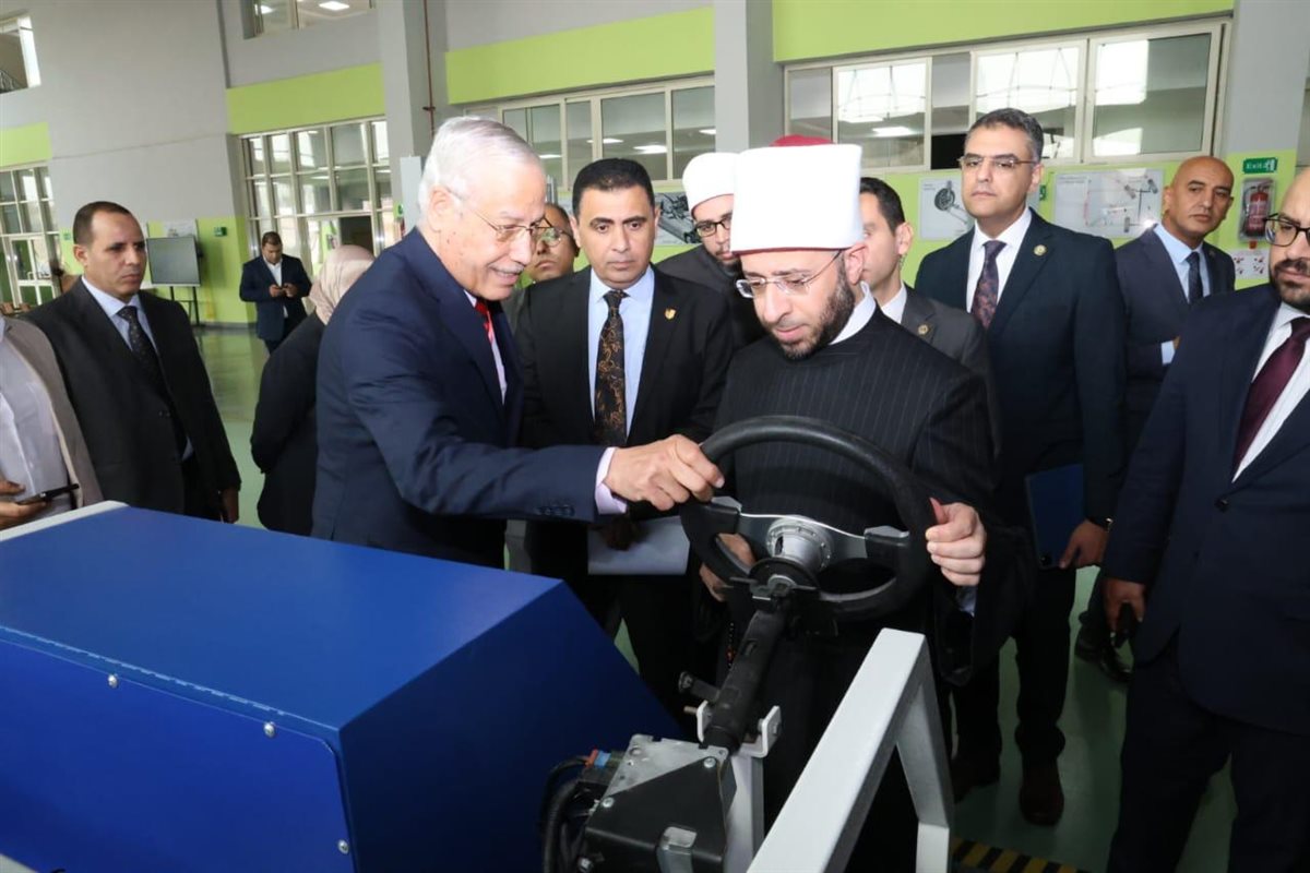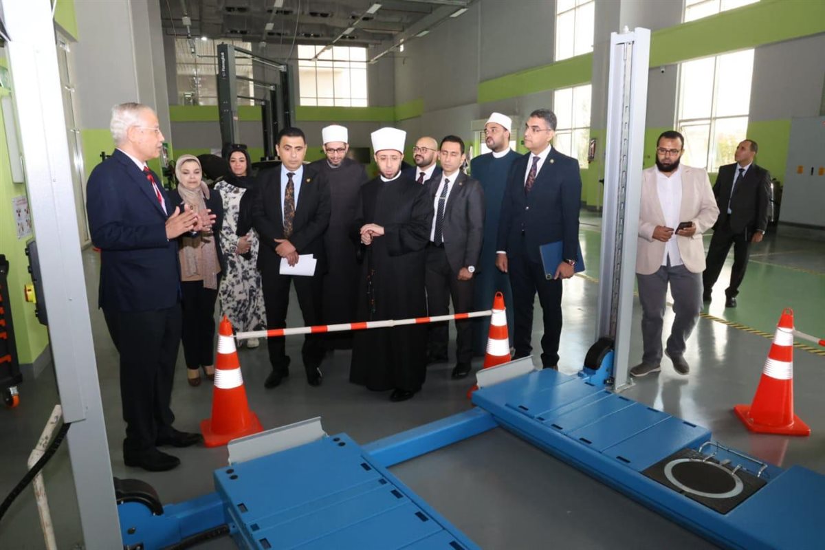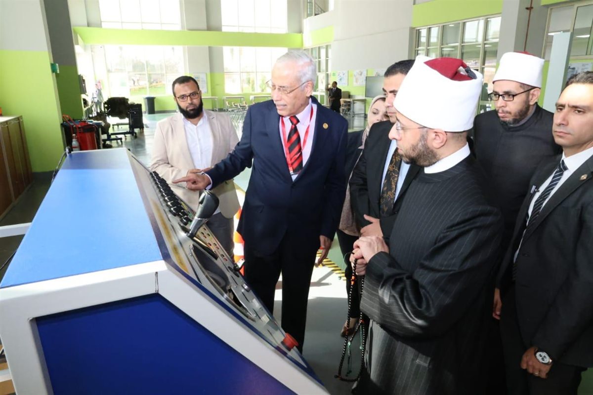 وفي مستهل الزيارة أعرب رئيس الجامعة عن تقديره العميق لوزارة الأوقاف بقيادة الدكتور أسامة الأزهري؛ لما تقوم به من جهود كبيرة في ترسيخ قيم التسامح والانتماء، ونشر الفكر الرشيد، وبناء الوعي الديني والوطني لدى الشباب بما يحفزهم على العمل واقتحام مجالات العلوم الحديثة، مؤكدًا أن آفاق التعاون بين الجامعة والوزارة رحبة. كما اصطحب الوزير في جولة تفقدية لأقسام الجامعة ومعاملها وورشها المتخصصة، حيث تفقد نموذج محاكاة لأعمال التمريض والرعاية الصحية، والورشة الهندسية لميكانيكا السيارات، في تجسيد واضح لحرص الجامعة على الدمج بين الجانبين المعرفي والتدريبي التطبيقي في منظومتها التعليمية.