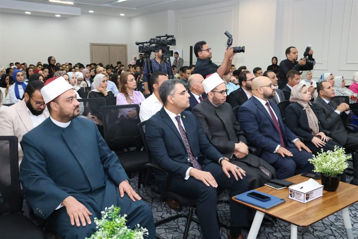وفي كلمته، أعرب وزير الأوقاف عن سعادته بالمشاركة في الندوة، واصفًا إياها بأنها تجربة ثرية للتفكير وتبادل الخبرات والاستماع لمجموعة من شباب مصر، ووجّه شكره لرئيس الجامعة والعمداء وأعضاء هيئة التدريس والطلاب. وأشار إلى أن عملية التعليم الناجحة تقوم على ثلاثة أسس متكاملة هي: المعرفة، والمهارة، والقيم الوجدانية، موضحًا أن التعليم لا يثمر إلا إذا جمع بين العلم والقيم، وأن المعرفة وحدها لا تكفي دون مهارة ووجدان؛ لأن الإبداع لا يتحقق إلا إذا أحبّ الإنسان ما يتعلمه ويتقنه.