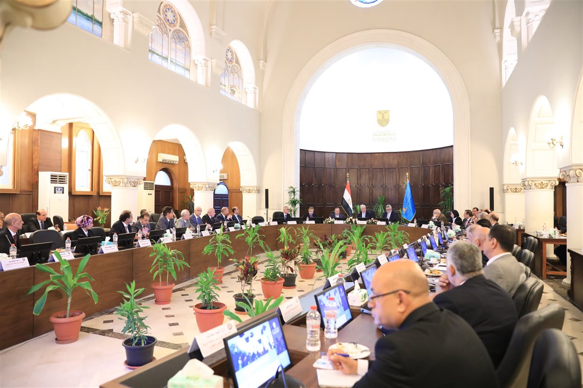 واستمع المجلس إلى عرض تفصيلي قدمه الدكتور عبدالعزيز قنصوة، رئيس جامعة الإسكندرية، حول جهود اللجنة المُشكلة لتحويل مصر إلى مركز إقليمي ودولي للتعليم والبحث العلمي والابتكار، يساهم في بناء اقتصاد المعرفة ويجذب الطلاب والباحثين من جميع أنحاء العالم، وذلك من خلال تشجيع الجامعات الحكومية على عقد شراكات لمنح درجات مزدوجة مع جامعات مرموقة، وتدويل الجامعات الحكومية وإنشاء أفرع لها خارج مصر وتصدير العلامة التجارية للتعليم المصري وإعادة تأسيس مكانته التاريخية، وزيادة أعداد الطلاب الوافدين المُلتحقين بالجامعات المصرية، وربط الأبحاث العلمية بالنشر العالمي واقتصاد المعرفة من خلال "أودية التكنولوجيا"، وربط البحث بالصناعة، وكذلك استعراض الخطوات التنفيذية لتنفيذ هذه المحاور.