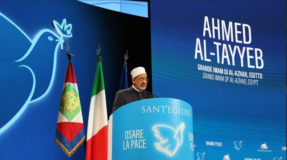 شارك فضيلة الإمام الأكبر الدكتور أحمد الطيب، شيخ الأزهر الشريف، رئيس مجلس حكماء المسلمين، في القمَّة العالميَّة التي تعقدها جمعية سانت إيجيديو بالعاصمة الإيطالية روما تحت عنوان "اللقاء العالمي من أجل السلام: إيجاد الشجاعة لتحقيق السلام"، بحضور الرئيس الإيطالي سيرجيو ماتاريلا، وجلالة الملكة ماتيلد ملكة بلجيكا، وأبرز القادة الدينيين والمفكِّرين من حول العالم.